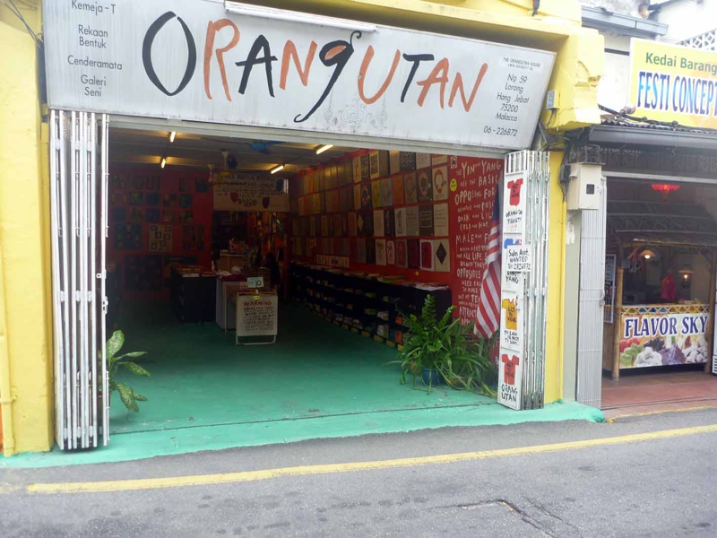 これまた有名な店、オラウータン・ハウス。主人が絵描きだそうで、マレーシアでは有名な人。この独特な建物はマラッカのどのガイドブックにも出て来ました。でも写真で見たよりは大きくはなさそう。しかし絵を描いて、のんびり暮らしながら生計を立てられれば幸せそう、もちろんの僕らの理解の及ばない苦労もあるのでしょうけれど。