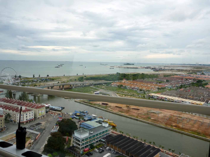 降り始めました。こちらはマラッカ海峡方面、やはり船がたくさん浮いています。もう少しお天気が良かったら遥かに良い景色だったのかも。取りあえずパニックにならないで済みました。でも何となく気が焦ってゆっくり景色を堪能する暇はなかった。地理を把握するために乗ったつもりが、あまり役に立たなかった。広いことだけは把握。