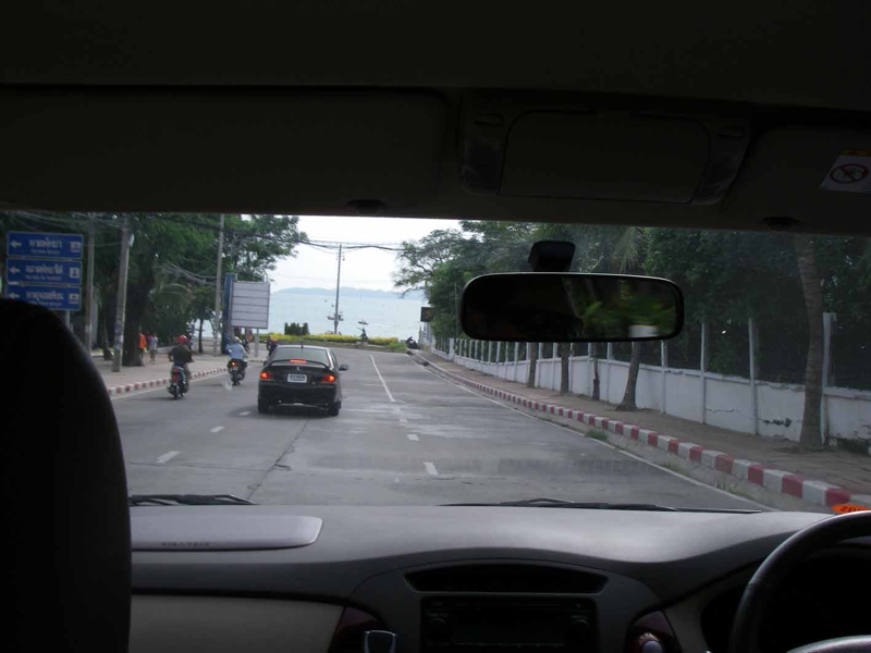 ようやく! 海が見えてきました。何だかんだで1時間ちょい、かなり疲れた送迎でした。3日後バンコックへはまた同じ車、同じ運ちゃん? 空港はバンコックよりだいぶ手前、ってことはもっと長い時間このスリルを味わう? ペニンシュラに送迎を頼むと片道2万円なのです。