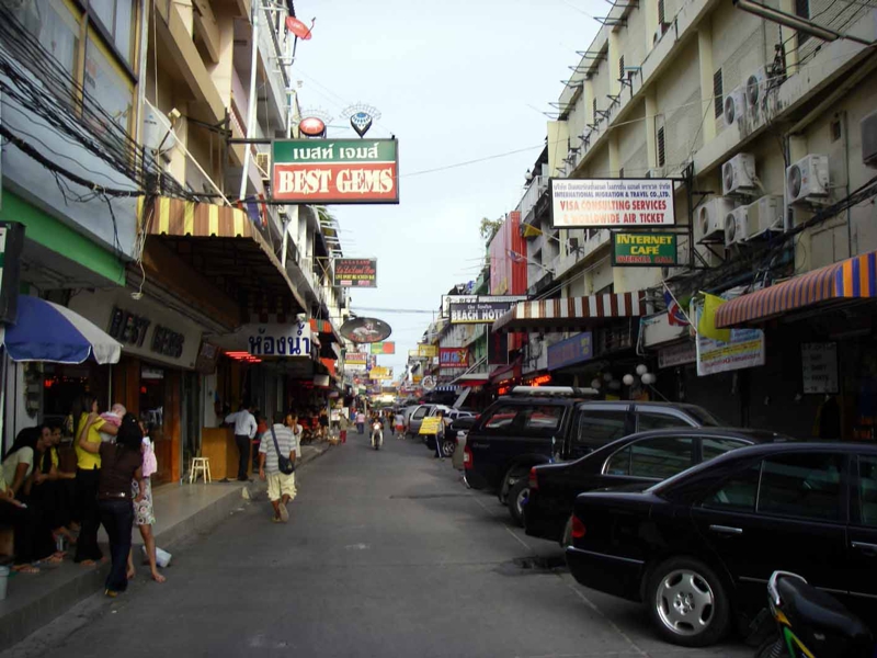 海岸通りにこんな小さな道が垂直に並び合流します。マッサージの店も見つけました。この先300mくらい歩いて行くと海岸通りと平行に走る2本目の通りがあり、この縦の道には順番に番号がついているようです。通りのことをソイと呼びます。ここはソイ6です。