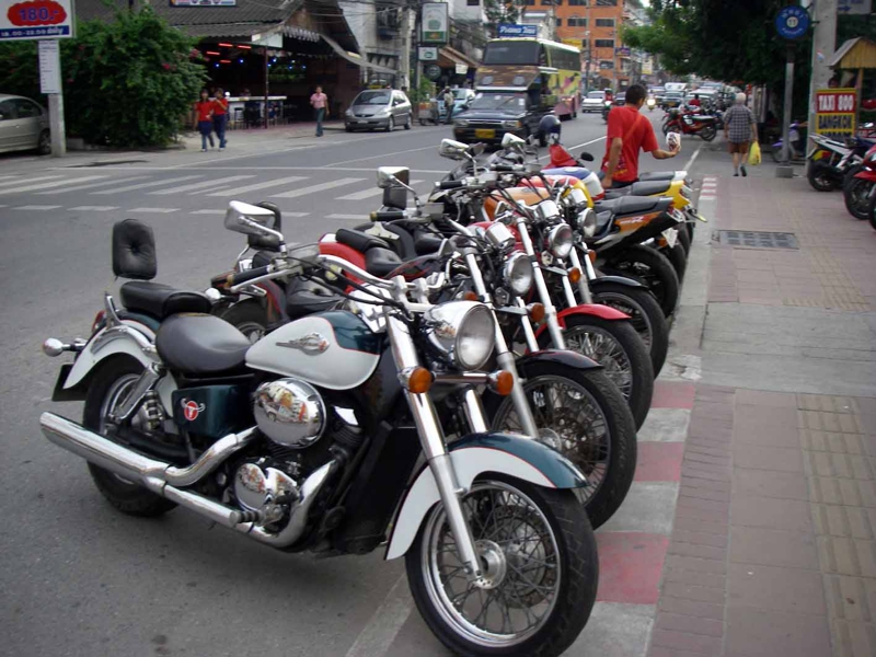 さて....、今日は冒険に出ます! 昨日のうちに説明を聞いて目星をつけていた店に。レンタルバイクの店です。やはり! ちょっとびびりながらも結局1300ccのビッグバイクを借りることにしました。これを24時間借りて800バーツ、3000円に満たないのです。