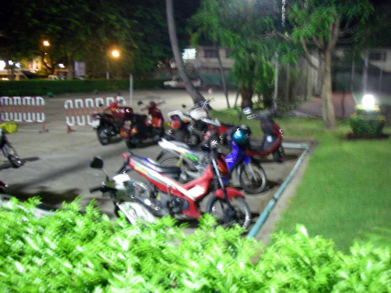 だいぶ飲んで帰ってきました。ホテルの駐輪場を通り、借りて来たバイクがちゃんとあるか確認です。まぁ盗まれても保険には入っているでしょうからおとがめはないでしょうけれど。2千バーツのdepsit如きがどれくらい役に立つのか? バンコックまでバイクで行って捨てても?