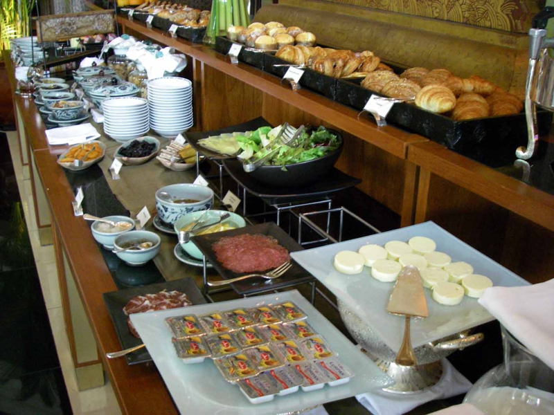 一応ビュッフェでチーズ、ハムやドライソーセージ、サラダはあります。それ以外にテーブルで卵料理と主食をオーダーし、それにコーヒーか紅茶が付きます。あとはフルーツもあり。そんなこんなで決してContinental Breakfastではなくそこそこのビュッフェに。