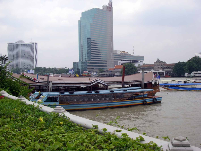 プールの一番先端は手すりを隔ててもうチャプラヤ川です。多くの船が行き来しますが、確かに水は茶色。良い景色も台無しです。この川の流域に様々なホテルが並びます。いわゆる一流どころのホテルが多い。向かい側のシャングリラホテルはマニラにも2つあります。