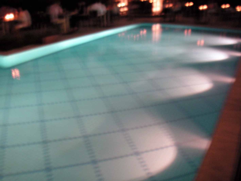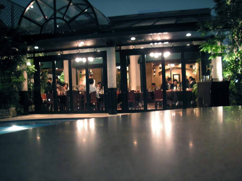 僕らの座った席を立って後ろを振り向くと先ほどのプールが。この日は金曜日、予約は1週間前にしましたが、それでも若干の空席はありそう。でも非常に人気のあるレストランで、なかなか予約が取れないと聞きました。もう開店して8年になるのだそうです。僕は最近知ったばかり。そう、最近はあまりレストラン探訪はしなくなりました。