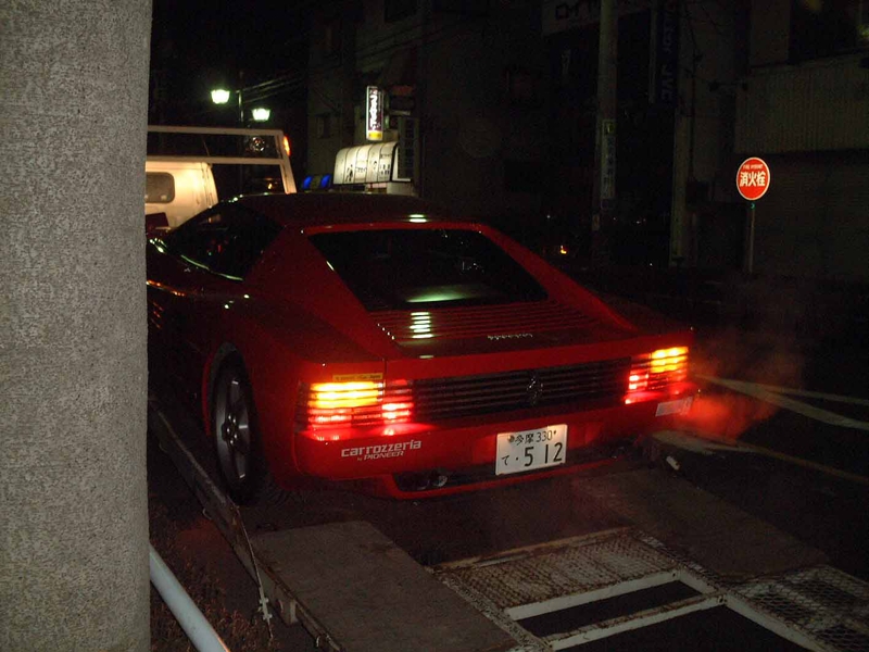 こんな別れを、まるで人との別れのように擬人化して悲しむ私に対して、家族を含め廻りの人は結構クールな反応です。そう、云ってみればたかが機械なんですけれどね。でも私に云わせれば違うんです。正に恋人(私はもう結婚しているから愛人?)のようなつき合いでした。このページに掲載したローダーに積んでいるところの写真、皆さんには馬鹿にされるかも知れませんが、実は私は泣きながらシャッターを押していたんですよ。排気管から出る煙に霞むテールランプがものすごく悲しく見えました。洗車した直後の車です。夜暗い中、我が車ながらすごく綺麗に見え