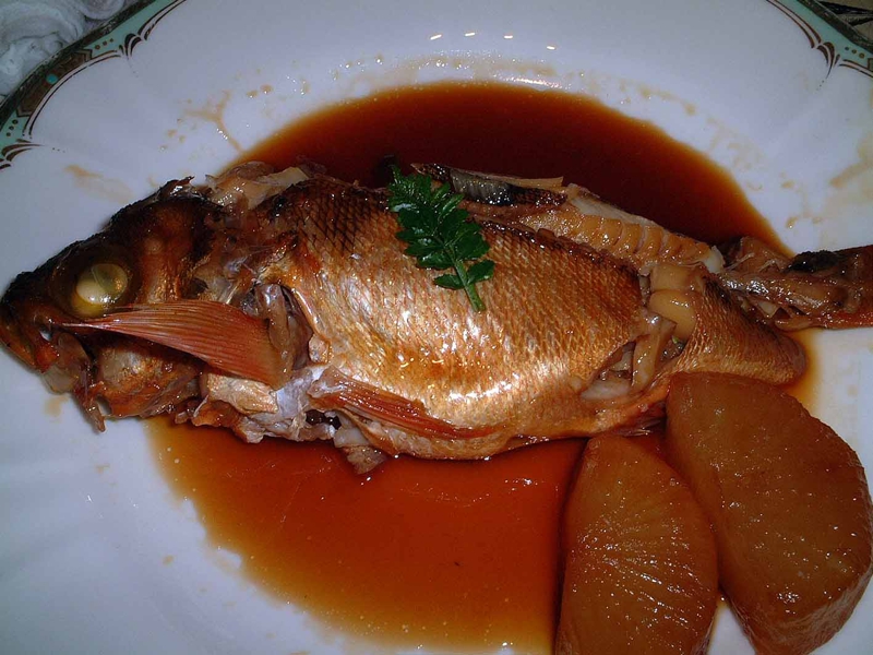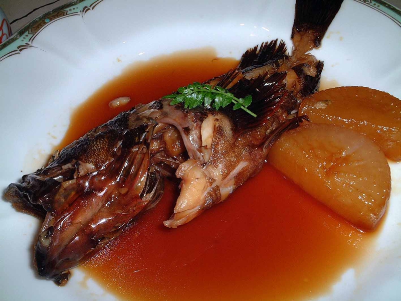 私の頼んだメバルの煮付け。そう云えば前回行った釣りで私は一番大きなメバルを釣り上げましたが、殆ど寝てなくてばててしまい、夜の酒盛りには参加しませんでした。そのメバルは他人の胃袋に。