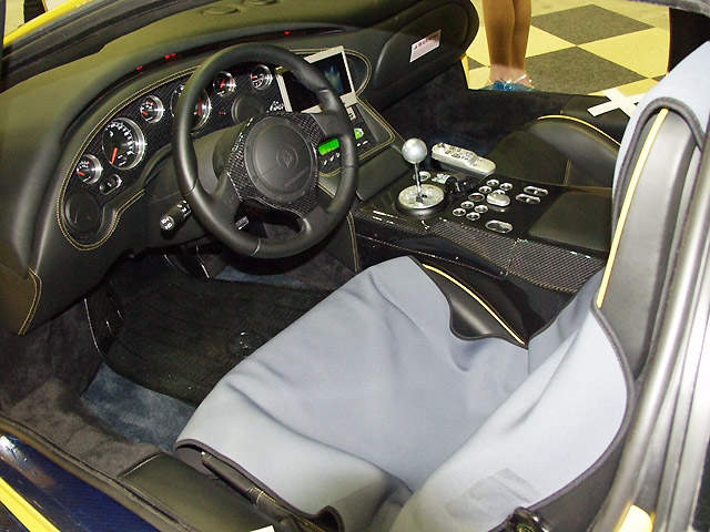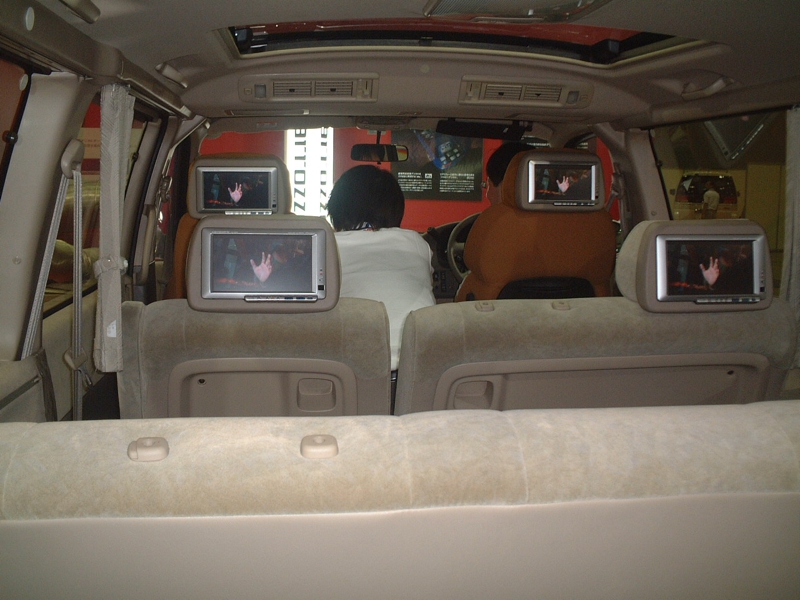 ではでは展示された私の愛車を披露します。残念ながら一番端っこになってしまったため、あまり目立たなかったみたい。ショップの人に私が提案、「後ろのボンネットを開けてエンジンを見せたら人が集まるよ。」やってみたら案の定......。今回のこの車のためのオーディオ機器はメーカー選びから仕上げのデザインまで全てショップに任せました。私の唯一の注文は、「派手にしてね。」