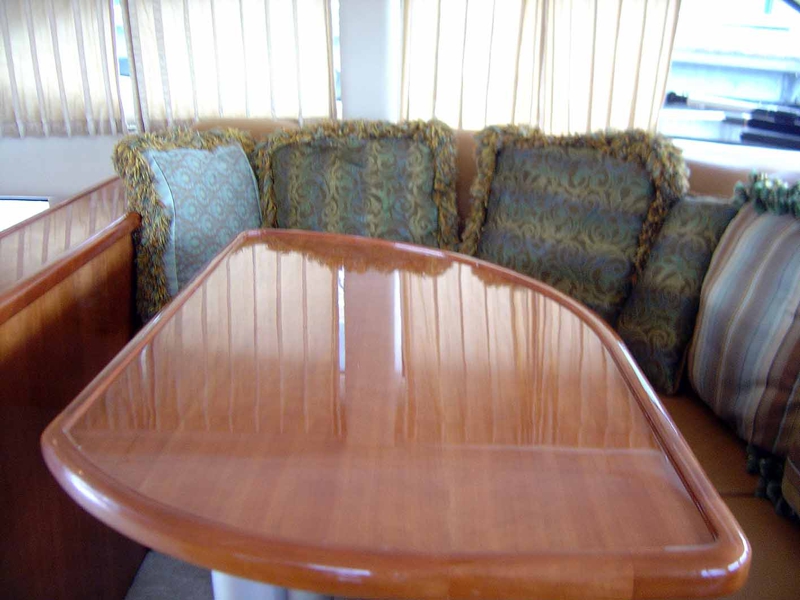 試乗艇の内部、いわゆるサロンクルーザーです。スタッフの説明ではこの船はそれほど速くはない、その分内装が豪華になっているんだそうです。???、速くて内装が豪華な船にすれば良いじゃん。