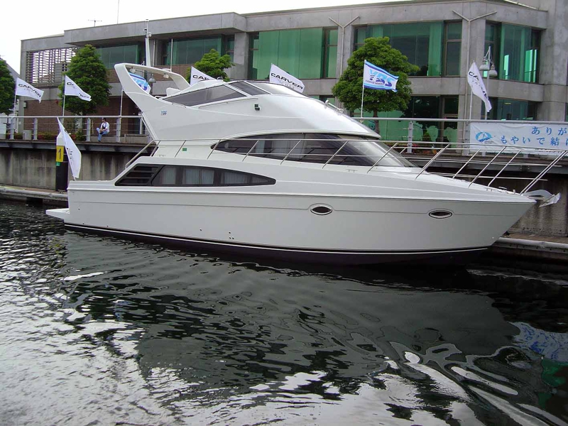 ショールームに通されました。ベイサイドマリーナにはよく来ますが、こんなヤマハのショールームがあったとは知りませんでした。カーバーのモーターヨットの写真がたくさん紹介されています。