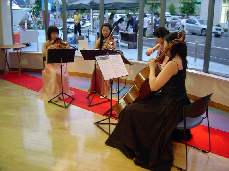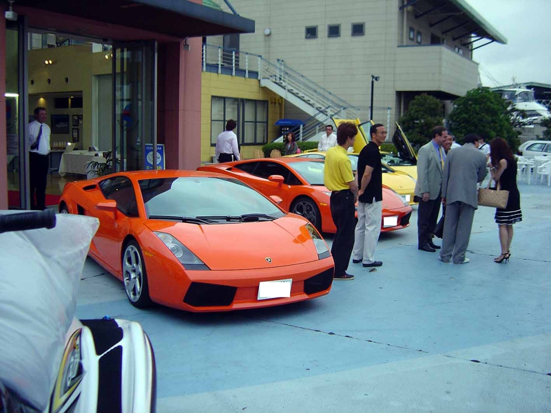 生演奏のBGMもあり、ちょっとセレブな雰囲気になってきました。そろそろお腹も空いてきました。数名の知り合いも来ました。そしてディーラーの社長さん、Lamborghini Japanのザンボットさんも。