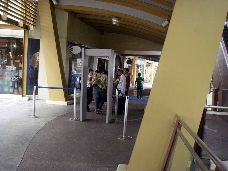 ショッピングセンターの入り口には必ずこんな金属探知機が設置され、非常に緩やかではありますがボディチェックを受けます。女性のバッグの中は必ず確認しているようです。マニラでは僕の知る限りは爆弾テロは最近は起きていないはず、しかし平和なダバオでさえやられました。