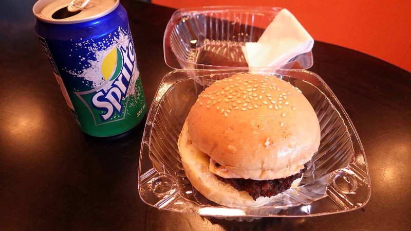 少し時間を持て余したのとイライラで空腹を感じてきました。さっきスペアリブ丼を食べたばかりでしたが、すぐ後ろのスタンドでチーズバーガーを頬張りました。肉はパサパサの酷いものでしたが、マフィンとソースの味付けはなかなかでした。食べている間も搭乗口の人の動きに注視しています。