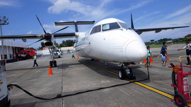 やっぱり……、カティクラン行きの飛行機はちんけな見たこともないプロペラ機でした。これどこ製? プロペラ機に乗るのは恐らく小学校3年生のときに四国へ行ったYS-11とフレンドシップ機以来? 確かにWebで見た飛行機もセスナ機に毛の生えたようなものでした。