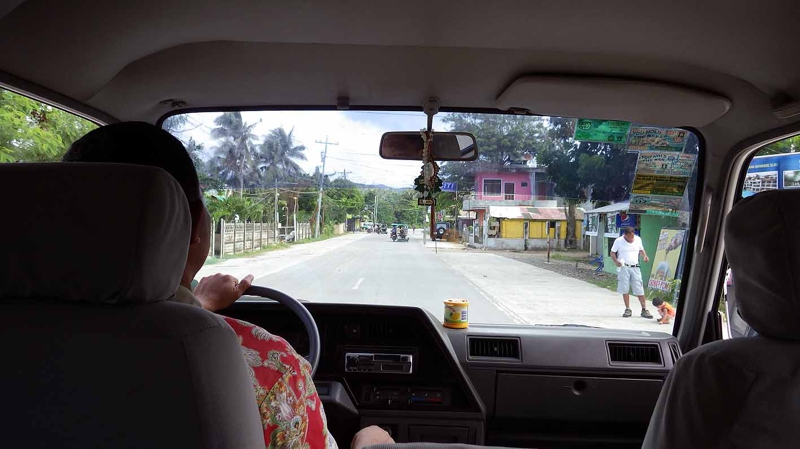 上陸してからもやはり日本製のバンがスタンバイ、それに乗ってドライバーが運転席に座り、あまり話が弾まないまま車は走り出しました。やっぱり田舎? スービックと同じような雰囲気の道が続きます。恐らく繁華街はかなり栄えているはず、一方でこの辺は正にNative Filippineでした。
