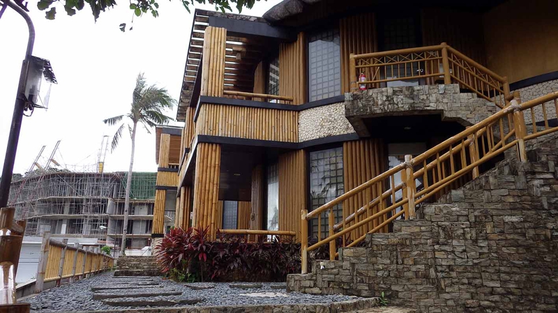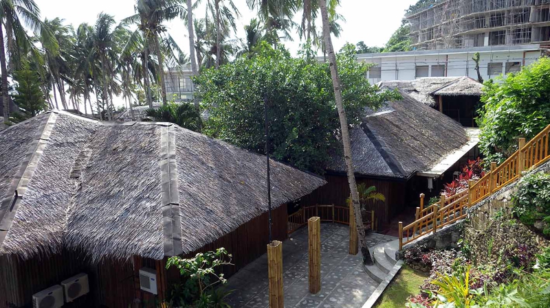 このコテージからビーチやレストラン、レセプションに行くには高台からそこそこ急な階段を降りていくよう、下にもコテージがありますが、今回は少し贅沢をしてバスタブ付きの部屋をオーダーしました。それ故、この高台になった様子。広いベランダがあり、ここでものんびり出来そうな雰囲気です。
