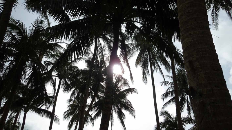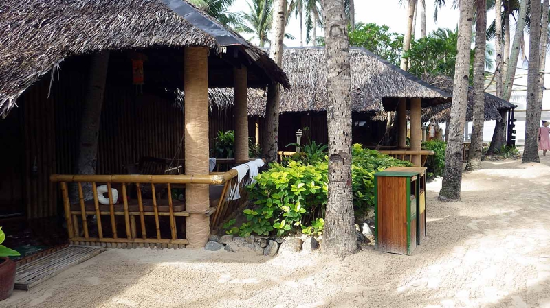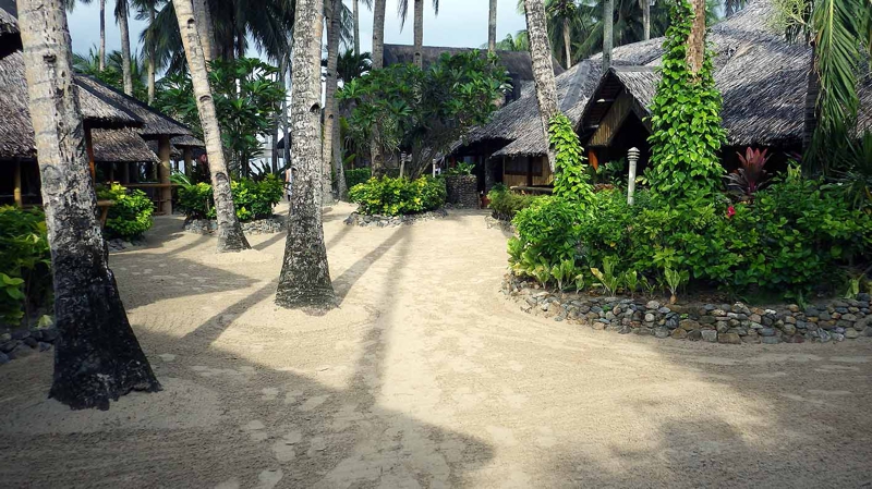 階段を下りると熱帯植物が生い茂り、如何にも南国に来たことが再認識出来ます。椰子の実もなっています。足元は柔らかい白い砂、少し陽が照ってきてちょっとホッとします。やはり旅行の楽しさは天気に大きく左右されるもの、スコールも時々ありますが、昨年のスービックのようなことはありません。