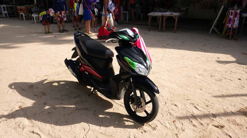 実はこのバイクを借りたのです。あまり大きなバイクはなさそうでした。でもたかが小さな島、縦に5kmくらい、くびれている一番細い処では800mくらいしかない小さな島なのです。しかし繁華街にはかなりの数の外国人観光客、物価は高く、僕の理想とする移住地の候補にはなりません。