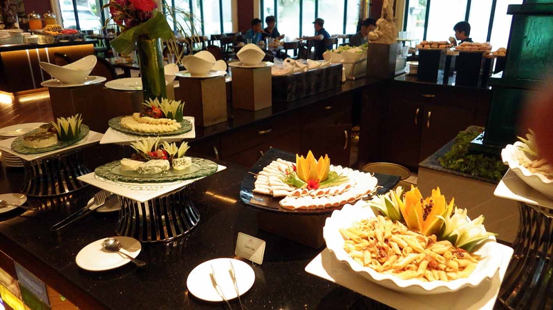 そのまま朝食へ。午前6時15分、レストランは午前6時からです。今日こそカロリーを抑えよう、そう思いました。でもこのホテルのビュッフェは美味しいのです。サラダもフルーツも豊富。未だ朝早いのに、もう起きてから2時間経っているので充分にお腹は空いています。これこそ健康的な生活!