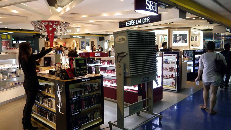 いや〜、参りました。汗だくになって空港待合室へ。自分用のスコッチウィスキーと女房用のウォッカ、そしてスタッフ用のお菓子を免税店で購入してシャツは汗でびっしょり、売り場はもちろん、二階の喫茶室も、はたまたJALのさくらラウウンジも全て! 冷房は効いていません。