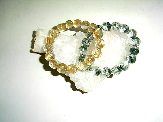更に! ゴールドルチルとグリーンファントムの組み合わせは最強! 本でその知識を仕入れ、更に顧問税理士の先生からそのことをだめ押しされ、その組み合わせを手に入れるに至りました。ゴールドルチルとグリーンファントムは左手にしなければならないのです。そしてそんなブレスレットを浄化するクラスター水晶も手に入れました(右の写真)。苦しいときの神頼み? 確かに今はいろいろと苦しいのです。ずいぶん石に小遣いを使いました。効果があるのかどうか? でも僕は悟っています。心のよりどころとして、自分自身が石を持っていることで何か心の安らぎ、自信、挑戦する気持ちを持つことが出来るなら.....、その石はやはり自分自身に貢献してくれている。石は僕らよりも遥か昔から存在し、永年のエネルギーを蓄えている。そのエネルギーが自分に役に立つと思えるなら、その石を持つ甲斐があるのだと、そう考えています。今度はカッと来やすい自分の性格を知った上で、怒りや自己否定的な感情を鎮めてくれるラリマー(ドミニカ共和国でとれる石)とヒーリング効果の高いモルダバイド(この石はちょっと高価)を手に入れたいと考えています。