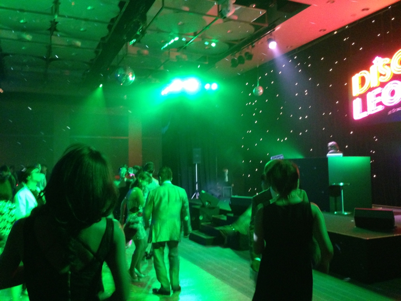 さぁ! ディスコタイムの始まりです。フロアには200−300人くらい、どれくらいの抽選だったんだろう? 興味があります。平均年齢は40歳代後半くらい? ちょっと我々二人はOverAgeかも。