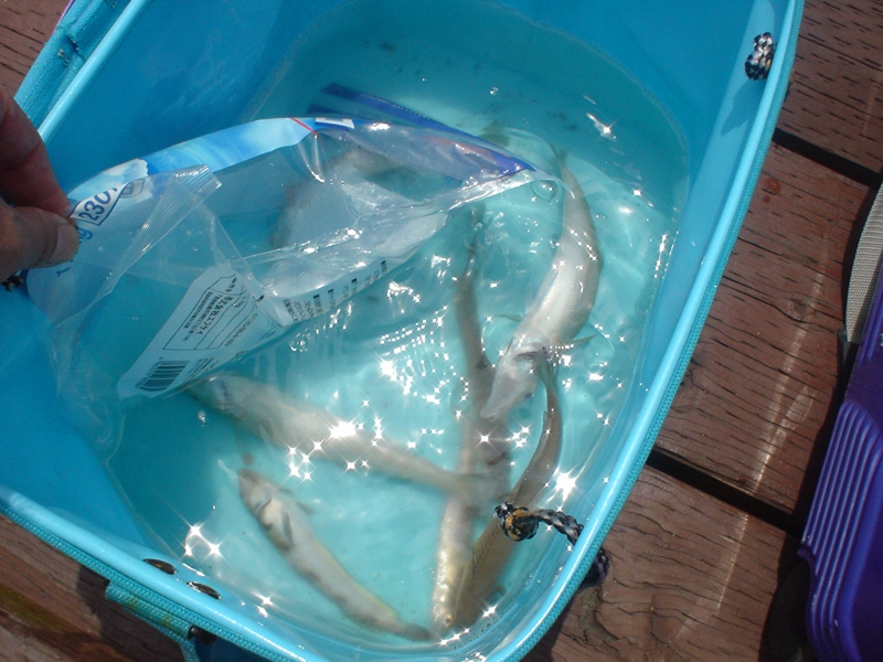 しばし沖のうねりに煽られながら撒き餌を捲くこと10数回、これでまた痩せられる? 釣りどころではありませんでした。しかし他のクルーが数匹のキスをゲット。マリーナへ戻ります。