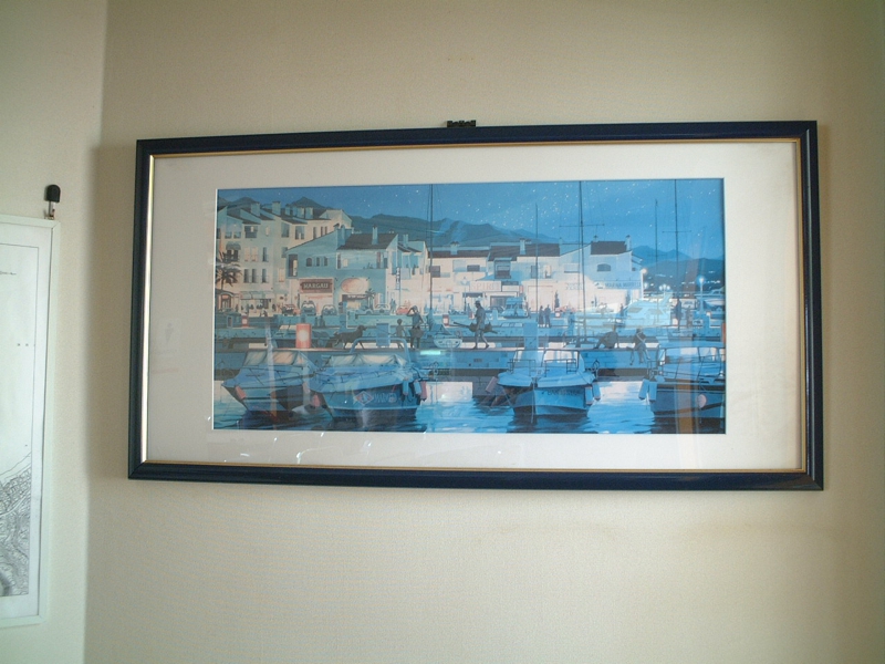 マリーナの玄関に笹倉鉄平の”プエルト バヌス”がかけてありました。1991年にスペインのマルベージャと云う港町で描かれた絵です。このマリーナの雰囲気にぴったり。夜も良い雰囲気かも。