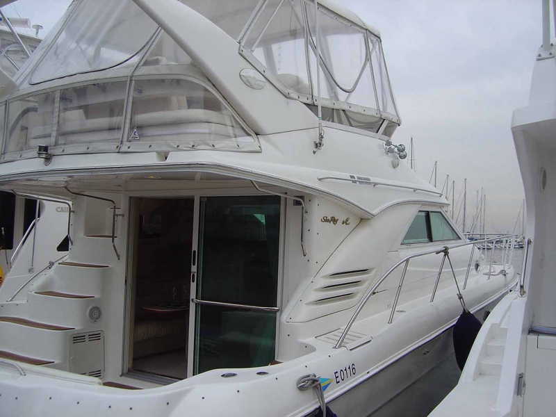 SeaRayの29Ftフライブリッジ。無理すれば今すぐにでも買える値段ではありますが、何さま古い。1989年製。ブリッジのコックピットに座ってみましたが、なかなか良さそう。でもオーニングもないし、雨が降ったら大変なことになりそうです。入門編としての船としてなら良いかも。でも実際にメンテを考えると高くつきそうですが。