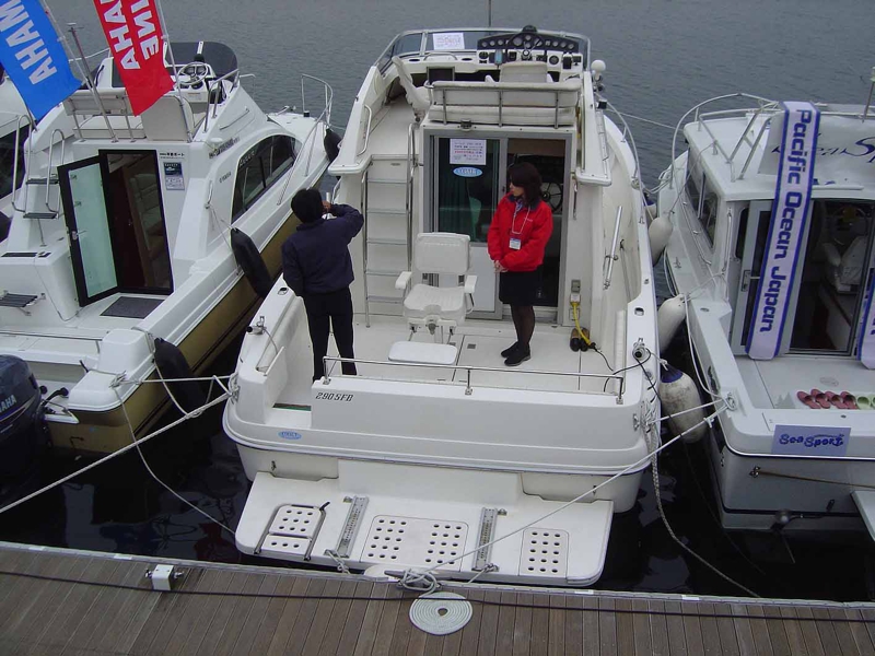 僅かながらヨットも展示されていました。同じ船でも同サイズならヨットの方が少し格安。でもヨットを動かすにはそれなりの知識、技術とまたクルーが必要です。確かに風を帆に受けてエンジンの音がしないのに相当なスピードで走る大型ヨットはそれはそれで不思議な魅力があるものです。このクラスのヨットなら少し高年式でも射程内に入ってくるのですが、やはり走り廻ることと釣りを目的とするならヨットは選択肢から外れていきます。