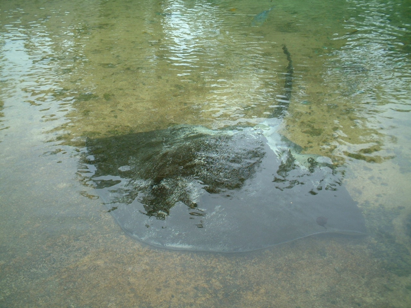 このエイ、人に慣れていて餌付いているんです。餌は切り身の魚。シュボッっと音を立てて、鰓? から大量の水を吹き出します。餌は手で裏側にある口まで持って行きます。凄い食欲でした。
