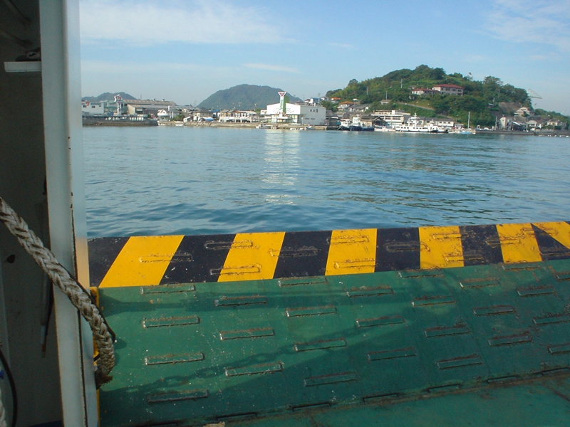 今日から使う教室まではホテルから歩いて3分のフェリーポートに行き、ほんの2-3分フェリーに乗って降りた目の前にあります。日本一短い船旅? 片道100円、本当に車も乗って海を渡るようです。対岸の島に車で行くには大きく遠回りして、はるか東にある橋を渡らなければダメ、しかもそこは有料道路です。