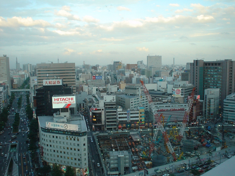 名古屋に着きました。何処に泊まるか、未だ決めていません。そんな予定を定めない旅行も私には珍しいこと、新幹線の中から駅の北側にそびえ立つツインタワーを見つけました。40階はありそう、そうだ! 綺麗な夜景を眺めたい! ここにホテルが入っているならここに泊まろう。携帯電話でAmexの顧客サービスに電話、なるべく上層のフロアを取って下さいと非常にわがままな注文をしました。電話を切らないまま部屋を確保する手続きをしてくれます。