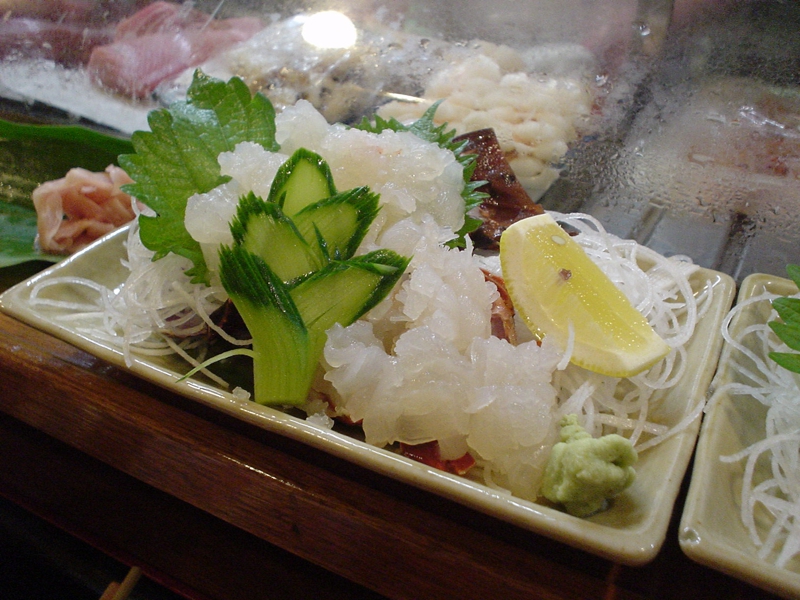 えんがわにタイ、こんな大きいえんがわでは一体元のヒラメはそれくらいの大きさなのでしょうか? タイもシコシコ、通常の店では白身はせいぜい3種類くらいしか置いていません。そう、アラの刺身なんてのもいただいたことがありましたっけ。私はこの店で初めてアラを食べました。