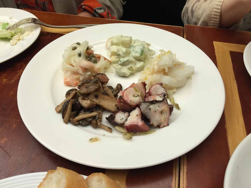 さてそのままいつものイタリアンレストランへ。電話予約した段階でボジョレー・ヌーボーはもう売り切れていることを聴いていました。確かに今年は遅かった……、ボジョレー・ヌーボー解禁日に僕はバンコクへ発ってしまいましたから。まぁ今夜の主役は牡蠣、他のワインでも良しとしました。まずは前菜、二種類だけ頼んだのに五種類の盛り合わせで来てしまいました。良いよ! お腹空いているから!