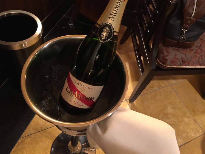 いつもならこれ見よがしにお薦めシャンパンのカードがテーブルにドカンと置いてあるのだけれど、今日はありませんでした。全員揃ったところでカンパイしなくちゃならないから、やっぱり中華料理でもシャンパンは必須だね。店のスタッフを呼んでお薦めシャンパンは? と尋ねました。今日はこのシャンパンだそうです。人数がいつもより少ないから一人2杯は行けそうだね。カンパーイ!