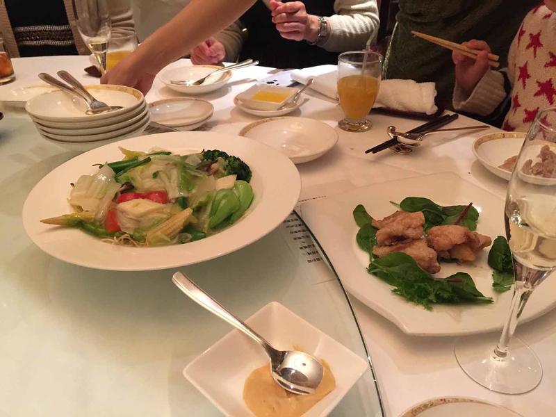 さ〜て、いよいよ料理が進行します。アワビの炒め物。歯ごたえのシャキッとしたアワビが結構入っています。むしろ味付けは薄めで、素材そのものの味を楽しむような意図が見て取れます。今年も後半にいろいろあったけれど、でも楽しく仕事が出来たでしょ? 今は結構外来がすったもんだしているけれど、1月になったら落ち着くから年内は頑張って。来年またスタッフを補充するから。