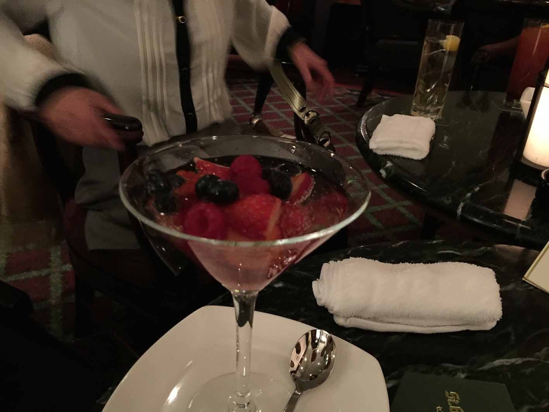 みんなお腹いっぱいで店を後にしました。3人ほど離脱して残りはまた隣のホテルのバーへ。ボーカルの入ったちょっと洒落た僕の好きなバーへ招待しました。今日は土曜日、それも忘年会シーズン、クリスマスも近くグループやカップルでこの由緒あるバーも混んでいました。ステージのあるスペースの隣、ちょっと端に追いやられましたが、むしろ静かで良さそう。隣の彼女はフルーツポンチ。