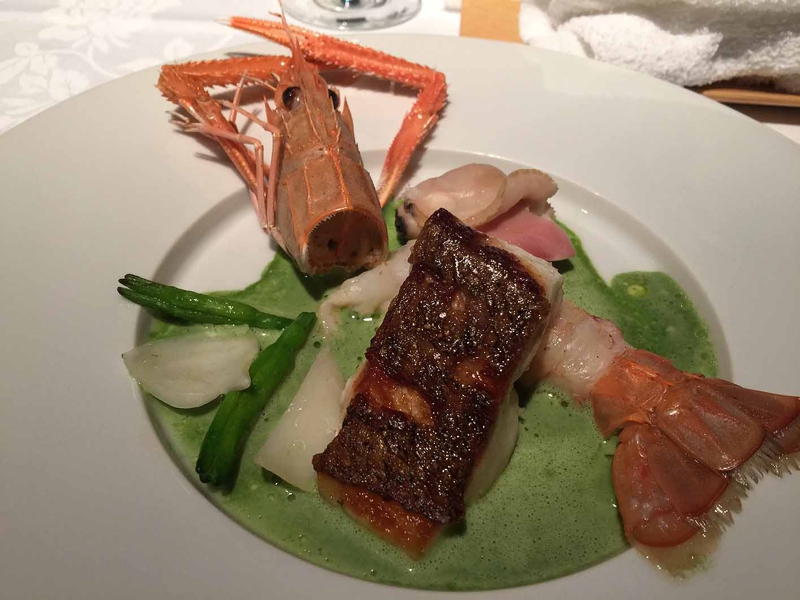 次はセミ・ファイナリスト、沼津直送の鮮魚とアカザエビのポワレ、上品な味に仕上がってました。四万十産のアオサノリのソースだそうです。イタリア料理ではアカザエビが良く使われます。一品一品にシェフのこだわりが見られ、皆さん満足いただいているようです。