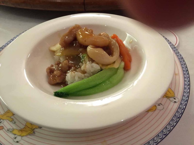 最後は食事になります。海鮮うま煮ご飯、もっぱらこの店は海鮮が得意なよう、もちろん牛肉も出てきましたが、海鮮料理で美味しいものが多かったように思います。もうかなり満腹……。