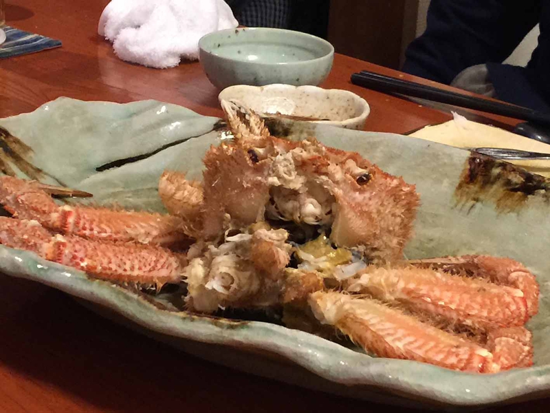 毛ガニが出てきました。どうやら今の僕は食べられない事はないらしいけれども遠慮しておきました。ましてや食べ方も良く判らない、ふぐちり前に蕁麻疹が出てきても困りますから。