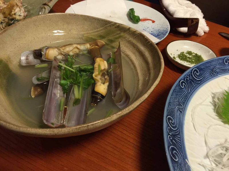そして珍しいマテ貝、僕もおそらく食べるのは初めてです。姿を見て食べられない人もいるようです。確か富津辺りではなかなか取れない超高級食材だったはず、ちょっと臭みがあります。