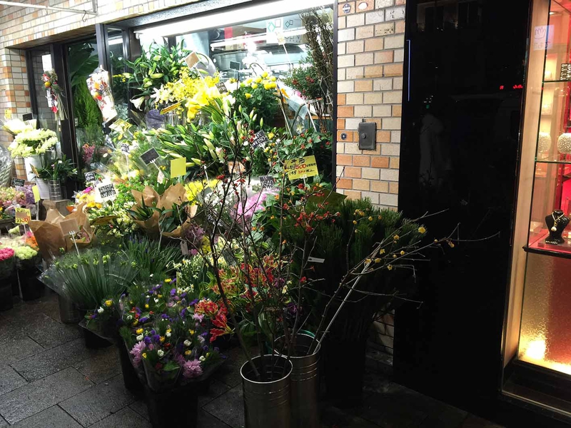 翌日、また表参道に行きました。今日はシンちゃんと愉快な仲間たち(諸星一家)の忘年会、表参道からタクシーで南麻布の会場へ向かいます。花屋さんが華やいでいました。