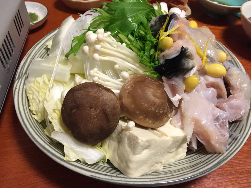 年の瀬も近づき医師会釣り部の忘年会が例年の鮮魚料理の店でありました。今日のメインはふぐちり、だけどそれ以外にもいろいろな海の幸が出てきます。まずはふぐの皮から。
