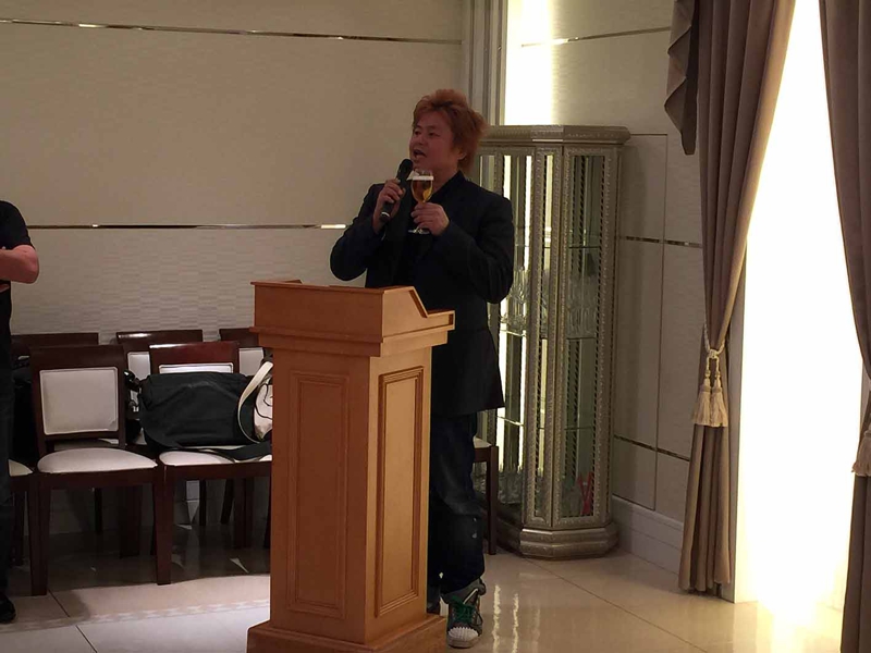 予定通り午後6時半からパーティの開始、シンちゃんの挨拶、カンパイの音頭から始まります。当初着席のパーティ予定だったのが、人数が増えすぎて結局立食となりました。