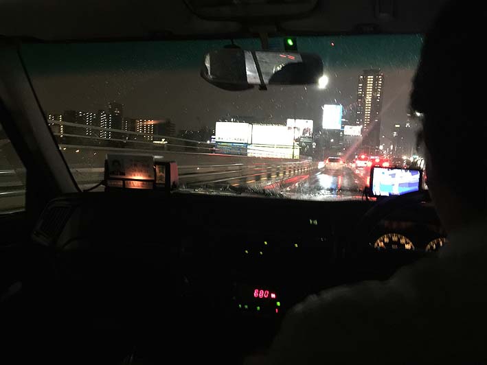 残念ながら宿泊するホテルは彼女とは別、僕は一流ホテルを確保してもらいましたが、どうやら彼女はそれほど良いホテルには泊まれないみたい。大阪駅付近で彼女を下ろし、僕はまたこのタクシーでホテルに向かいました。今夜、彼女も久々に会う友人と待ち合わせの予定、巧くタイミングが合えばメールで連絡し、お互い2次会で合流しようと言う約束をして別れました。雨脚は段々強くなります。