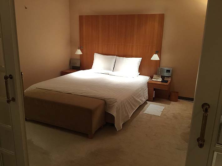 キングサイズのベッド、残念ながら担当MRの彼女を呼ぶわけにはいきませんが、今夜は熟睡できそう。ここのところ睡眠時間はだいぶ減っていました。スイートルームはそれほど広いわけではありませんが、清潔で感じの良い部屋でした。リビングルーム12畳、ベッドルーム12畳ぐらい? やはり土地の安い海外の方が贅沢な面積を取っているように思います。でもスイートに変更で得しました。