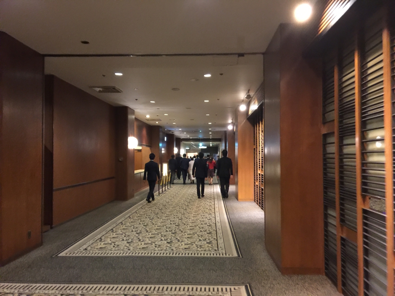 その後の退屈な偉い先生の話も終わり(退屈で少し寝ちゃいました…)、合計2時間の講演も終わり、この会場から聴講者が出て行きます。この座席数で半分、まさにこちら側が西の間で、ここが僕の結婚式場だった所です。一体何組のカップルを見送って行ったのだろう? そして何組が別かれたのだろう? 取りあえず当家は未だに大丈夫です。