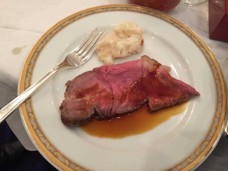 お寿司はあまりにも並んでいるので諦めました。そう、せっかくこのホテルに来たのだから、このホテルならではの料理が食べたい、お寿司なら他にも美味しい処はいくらでもあるのだから。That grape must be sour! の気分で諦めました。その代わり5分程並んでこのローストビーフをいただきました。一人ずつ切り分けてソースとマッシュボテトを添えて渡してくれます。
