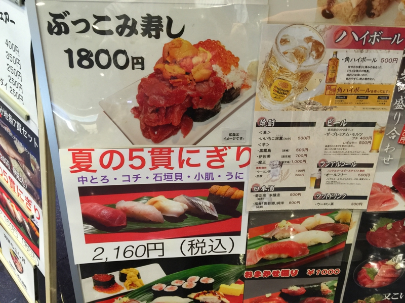 モーニングセットでは少し物足りなかったので、もうちょっと何か食べようかと思いました。重い鞄を持ったまま広い空港ロビーを歩き廻り、ふと見つけたお寿司を食べようかと思いました。朝っぱらから握り鮨? ビールも行っちゃう? 休日ならではの贅沢ではないでしょうか? でも、握り寿司5卷で2,000円!? やめました(><)